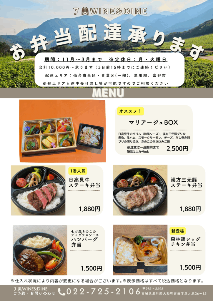 配達区間は<泉区><富谷市><黒川郡><青葉区(一部)>となります🚗³₃