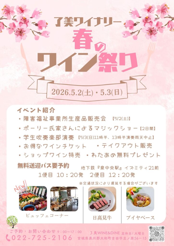 GWは了美のワイン祭りに是非遊びにお越しくださいませ